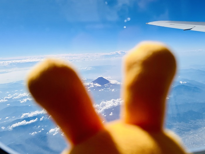 新幹線(東京〜名古屋) 出張の多い仕事をしています。今年の夏はえこぴょんと一緒に旅に出ました。麦わら帽子とリユックで、可愛くオシャレをしたえこぴょんです。