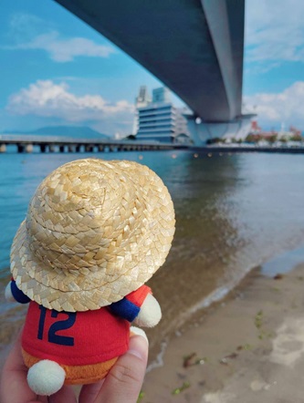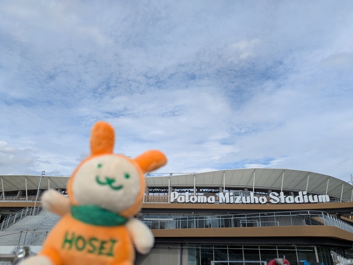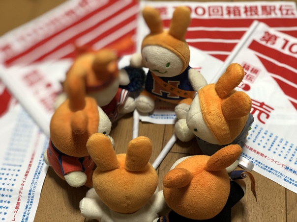 大阪ヤンマースタジアム長居 法政大学陸上部を応援しています。学生さんや卒業生の試合を応援に行くときや、箱根駅伝祈願に出かけるときは、いつもえこぴょんと一緒に行きます。えこぴょんにいろんな景色を見せてあげているつもりで写真を撮っていましたが、こうして振り返ると、えこぴょんにいろんな場所に連れて行ってもらっていたのかなとも感じます。どれも楽しい思い出ばかりです。