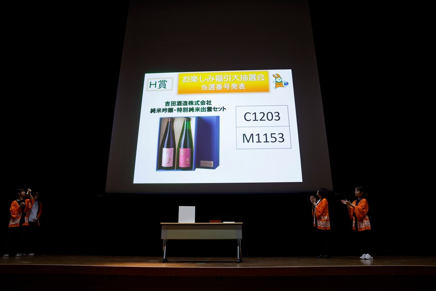 お楽しみ福引大抽選会 コー総長に抽選くじを引いていただき、賞を決定しました。時折、歓声が上がりました。