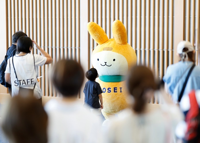 フォトスポット 着ぐるみえこぴょん登場時には、「かわいい~」との声があがり、写真撮影には列ができていました。また、当日は天候にも恵まれ、スカイホール26階からの景色も楽しんでいただきました。
